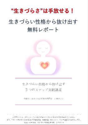 「生きづらい性格から抜け出す3つのステップ実践講座」無料レポートに興味をお持ちいただき、ありがとうございます。